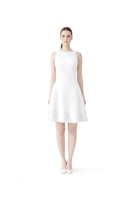 A sculpted silhouette adorned with delicate ruffles designed to move with quiet elegance